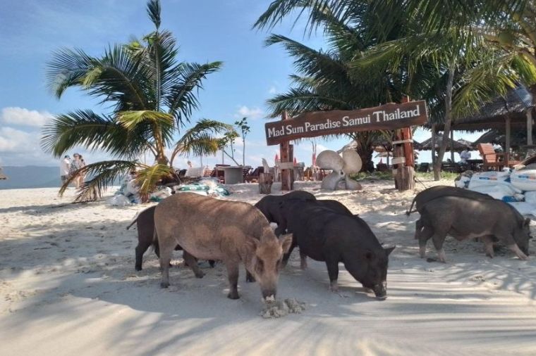 【豬島Koh Madsum半日遊(10:00-14:00)】被喻為「泰國版巴哈馬(Bahamas)的小豬島,這裡能看見清澈見底的大海、細膩柔軟的沙灘,還有超萌的小豬們在岸邊慵懶漫步💕 您可以盡情游泳、曬太陽,甚至與這些可愛的小動物互動、餵食,享受滿滿的療癒時光,絕對是你的夢幻打卡地!Koh Tan 浮潛與美麗珊瑚礁,七彩繽紛的魚兒伴游。